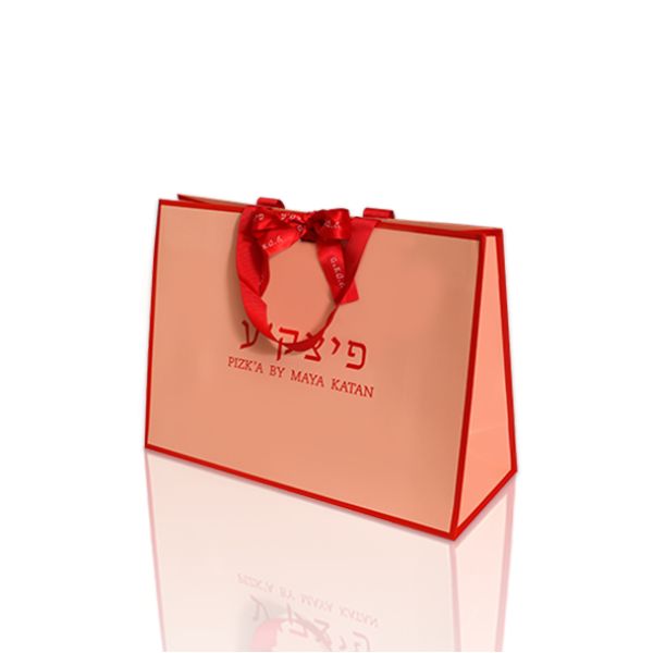 שקית קרטון בינונית, עם הטבעה וסרט ממותג